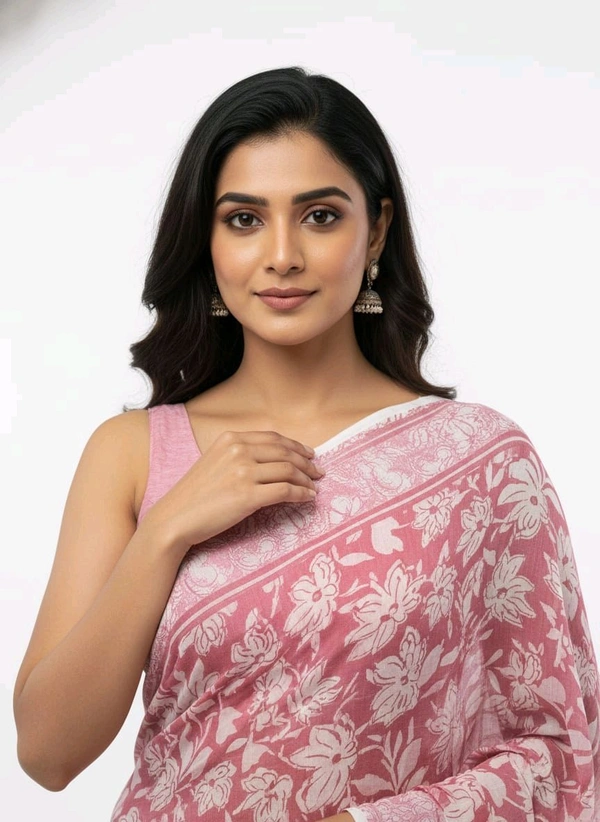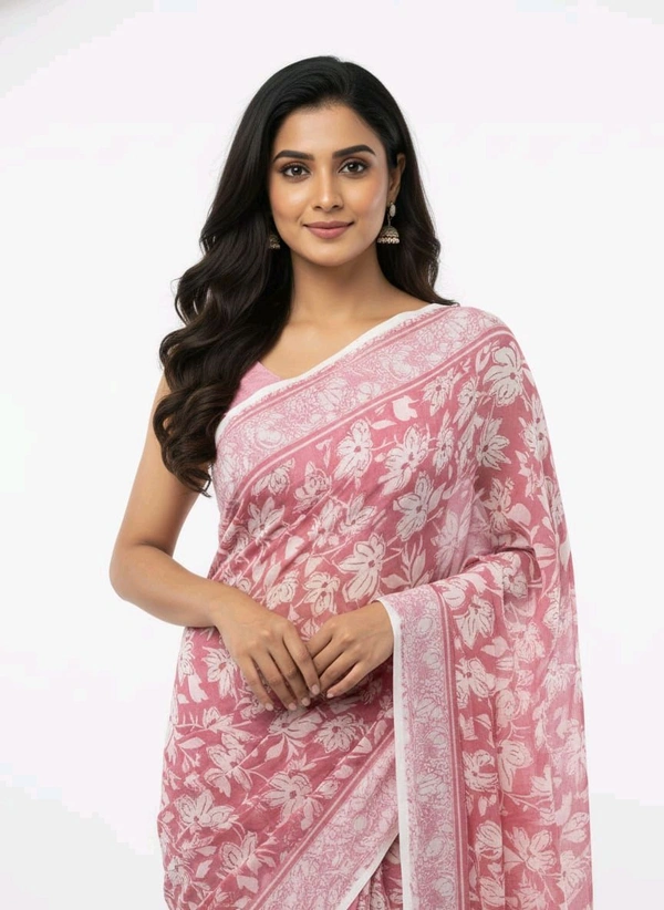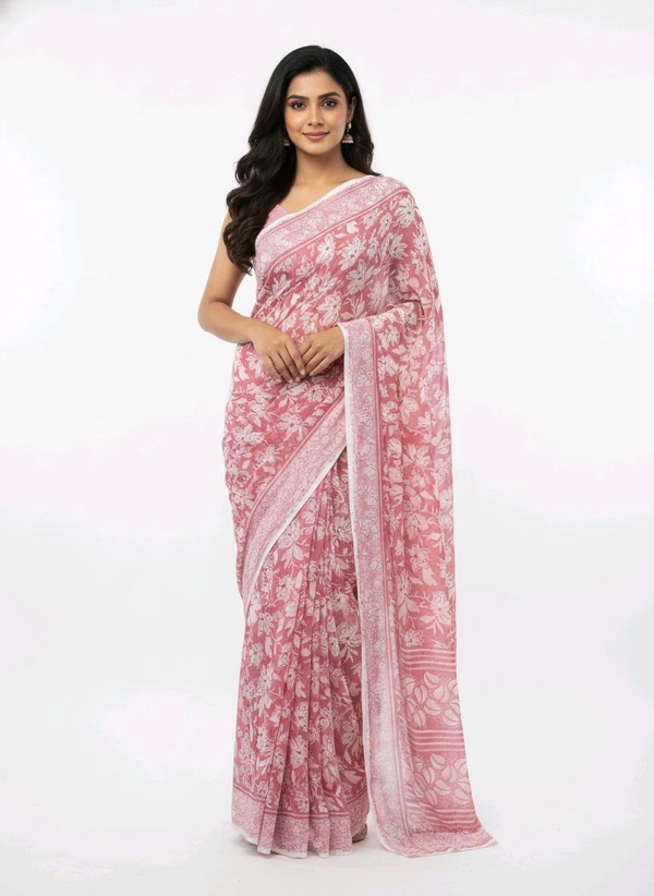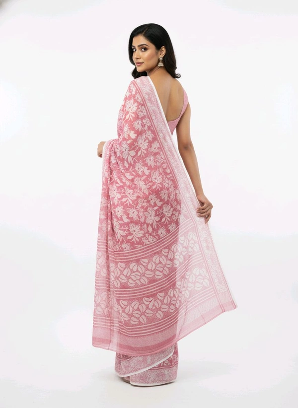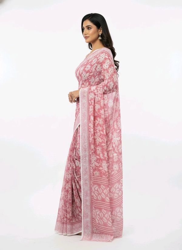 Bheru Silk Mills Floral Printed Flamingo Pink Chiffon Saree – Elegance Redefined