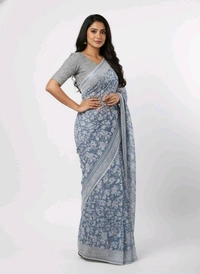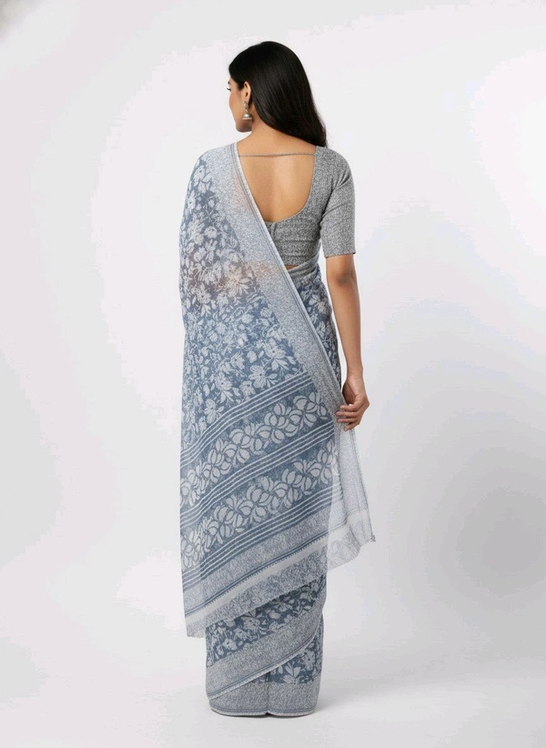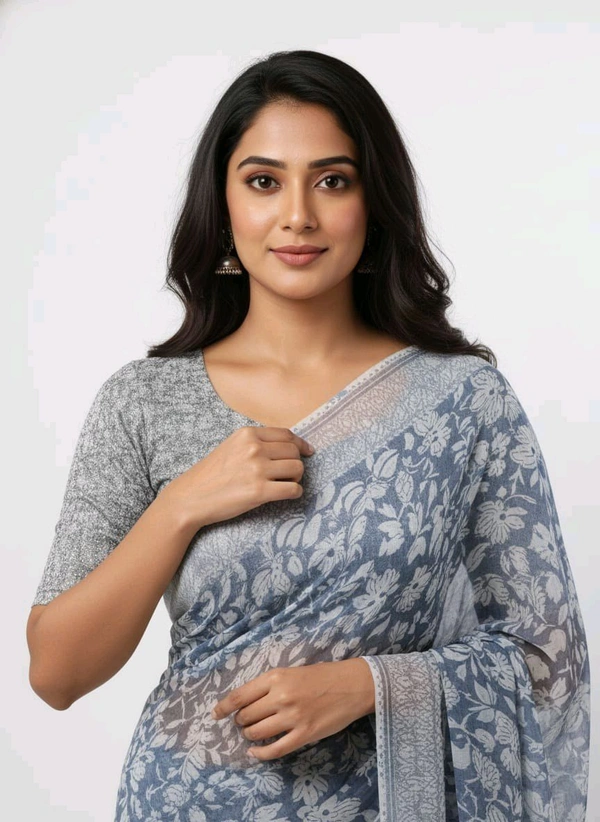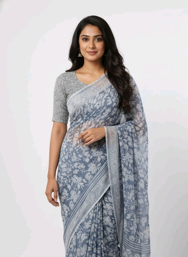 Elevate Your Style with the Bheru Silk Mills FLORAL PRINTED Grey Chiffon Saree