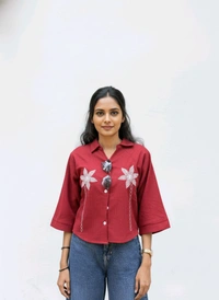 Add a touch of sophistication and charm to your wardrobe with the G K Floral Embroidery Crop Top in Red, exclusively from Thrinaiga Apparels. Designed to make you stand out, this stunning crop top blends modern style with timeless elegance, making it a perfect choice for casual outings, brunches, or even special occasions.