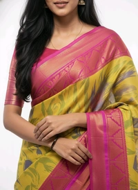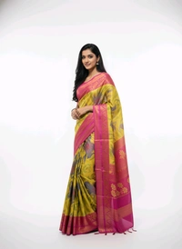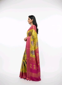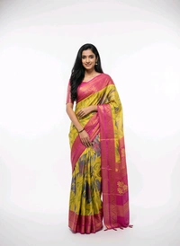 Step into the world of timeless beauty with the Shining Star Floral Printed Chiffon Saree from Thrinaiga Apparels. Designed to captivate, this exquisite saree combines the gentle allure of rose pink with the vibrant charm of canary yellow, making it a must-have in every wardrobe. Whether you're attending a festive celebration, a wedding, or a casual gathering, this saree ensures you stand out with its effortless grace and sophistication.
