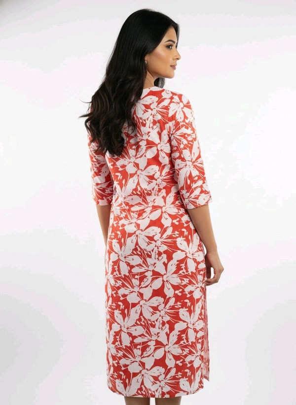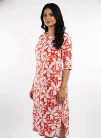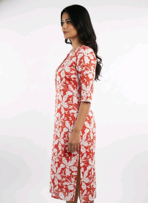 The vibrant red hue is complemented by delicate floral prints, adding a chic and feminine touch to your wardrobe. Whether you pair it with leggings, palazzos, or jeans, this kurti is versatile enough to adapt to any occasion effortlessly. Its lightweight fabric and impeccable craftsmanship make it an essential addition to your ethnic collection.