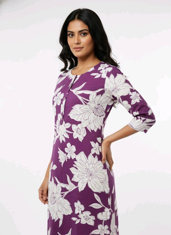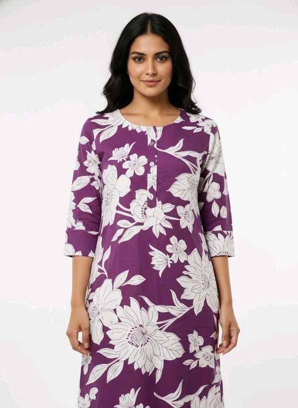 Step into effortless style and comfort with the Thrinaiga Floral Printed Pure Cotton Kurti in a stunning violet hue. Exclusively crafted by Thrinaiga Apparels, this kurti is the perfect blend of elegance and functionality, designed to complement your everyday wardrobe while keeping you at ease. Whether you're heading to work, meeting friends, or enjoying a casual day out, this kurti ensures you stay fashionable without compromising on comfort.