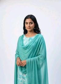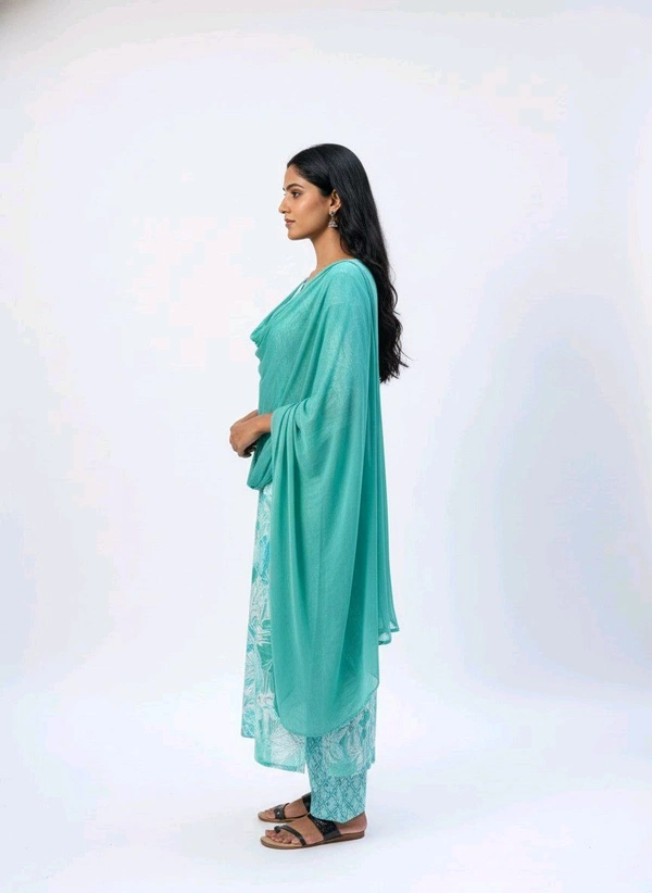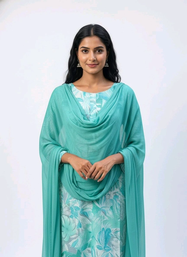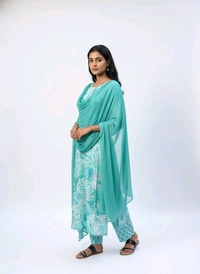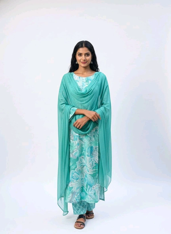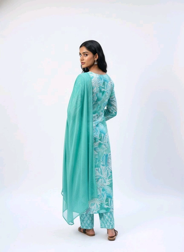 Thrinaiga Floral Printed Sky Blue Churidar Set