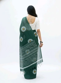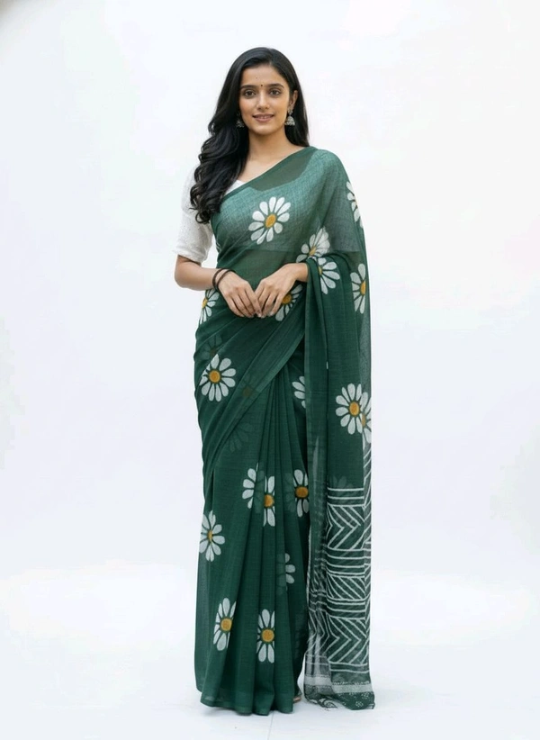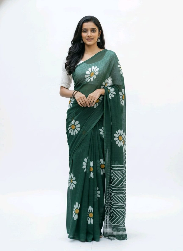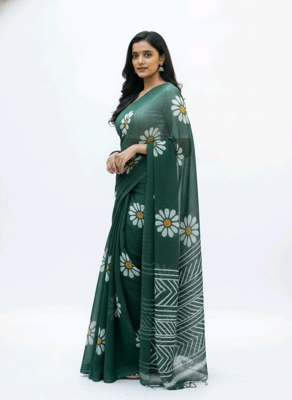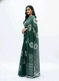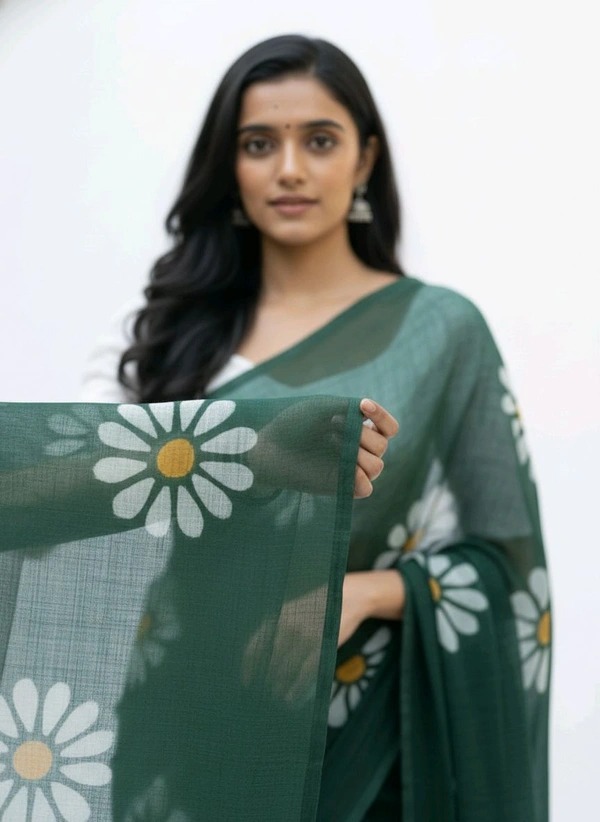 Tik Tok FLORAL PRINTED Dark Green Chiffon Saree - Elevate Your Elegance