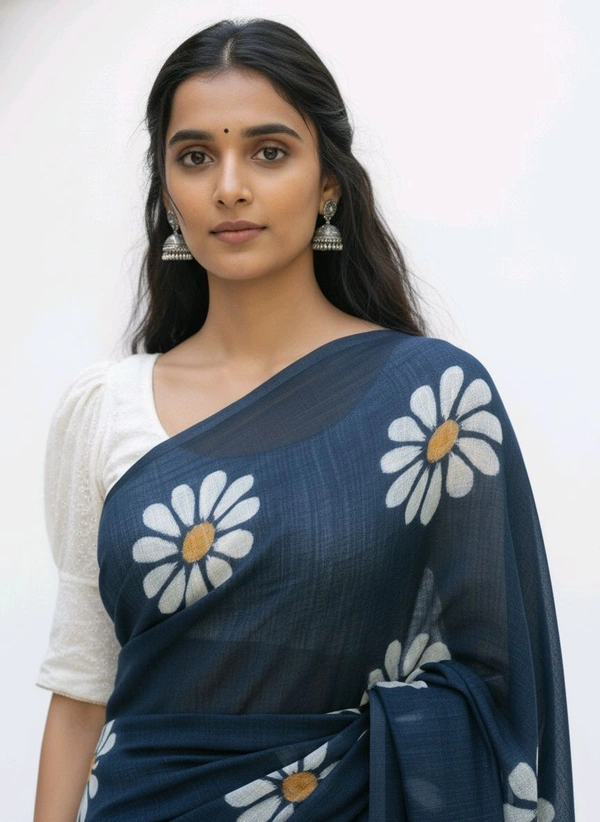 Step into timeless elegance with the Tik Tok FLORAL PRINTED Navy Blue Chiffon Saree from Thrinaiga Apparels. Designed for women who love a blend of tradition and contemporary style, this saree is the perfect choice for any occasion, from festive celebrations to evening gatherings. With its luxurious chiffon fabric and exquisite floral prints, it’s a wardrobe essential that exudes grace and sophistication.