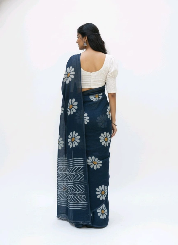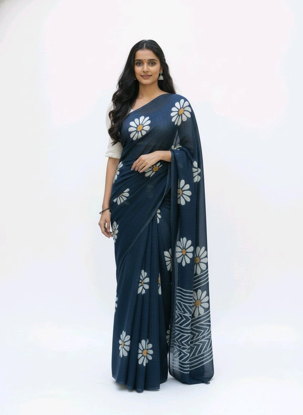 Tik Tok FLORAL PRINTED Navy Blue Chiffon Saree - Elegance Redefined