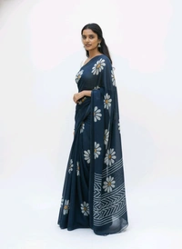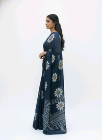 Tik Tok FLORAL PRINTED Navy Blue Chiffon Saree